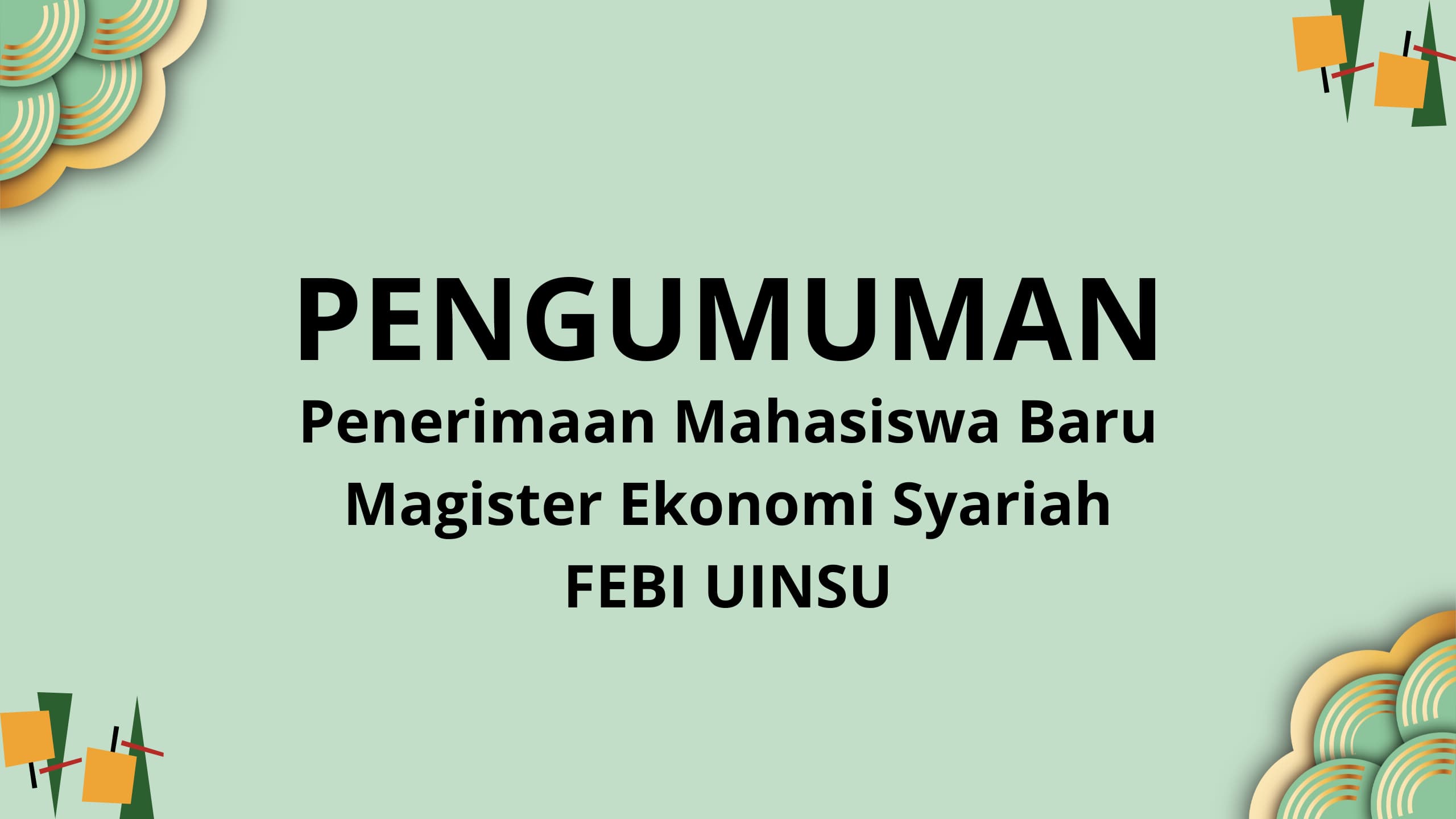 Penerimaan Mahasiswa Baru Magister Ekonomi Syariah UINSU
